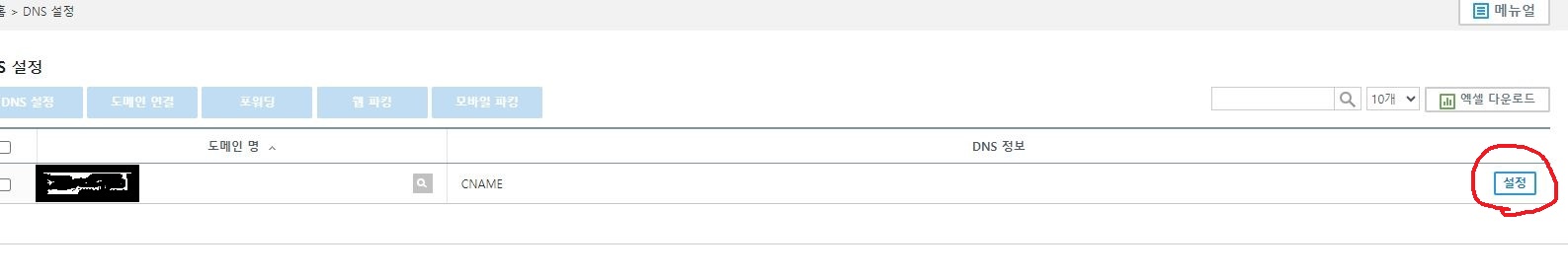 7. 개인 도메인 설정에 가비아에서 만든 하위도메인 주소를 넣는다.
